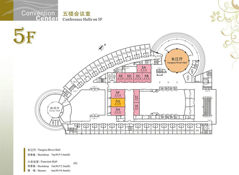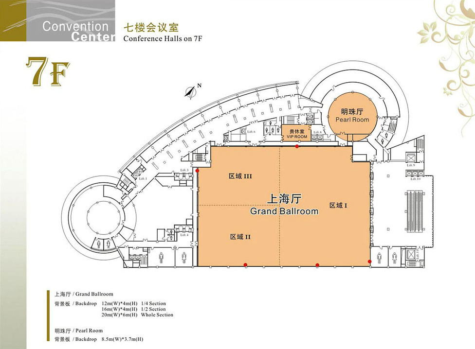 The most fascinating part of the entire conference center building is the 11th-floor roof garden and the open-air sightseeing gallery. The roof garden is located in the buildings huge glass sphere. The garden is filled with fresh ornamental trees. There is also a sightseeing platform in the sphere. Visitors can enjoy the view of the Huangpu River and the Bund. The rooftop sightseeing corridor is 100 meters long. The upper level is the sightseeing layer and the lower level is the leisure floor. The two sides of the corridor are connected to the sphere.