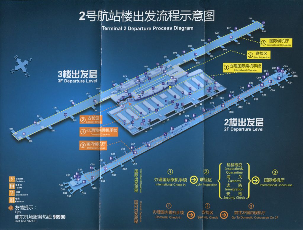 The airport has two terminals, T1 and T2 which are connected via shuttle buses. It is connected to the CBD and major areas of Shanghai via the Metro Line 2, the Maglev, ten public bus lines, and taxis. More about airport transfers here.