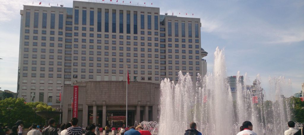 People’s Square is a green area that is not too big, but the trees are lush and there are thousands of pigeons. When you are tired, you can rest on the bench and feed the pigeons. In the center of the square is a fountain which puts on a display every night under the illumination of various colors.